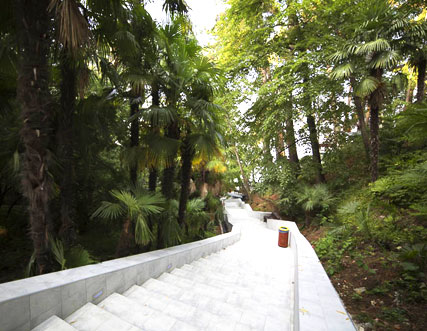 Во время согласования рабочего проекта санатория с Отделом строительства и архитектуры Сочинского горисполкома, в частности с отделом лесопаркового хозяйства города Сочи, архитектору Баркалову Е.И. было рекомендовано расположить здания так, чтобы ни в коем случае не повредить «… две ценные пальмы (Вашингтония и Слоновая), растения черного перца, кипарисовую аллею вдоль лестницы к морю…». Невольно задается вопрос: «В чем же ценность именно этих растений?»